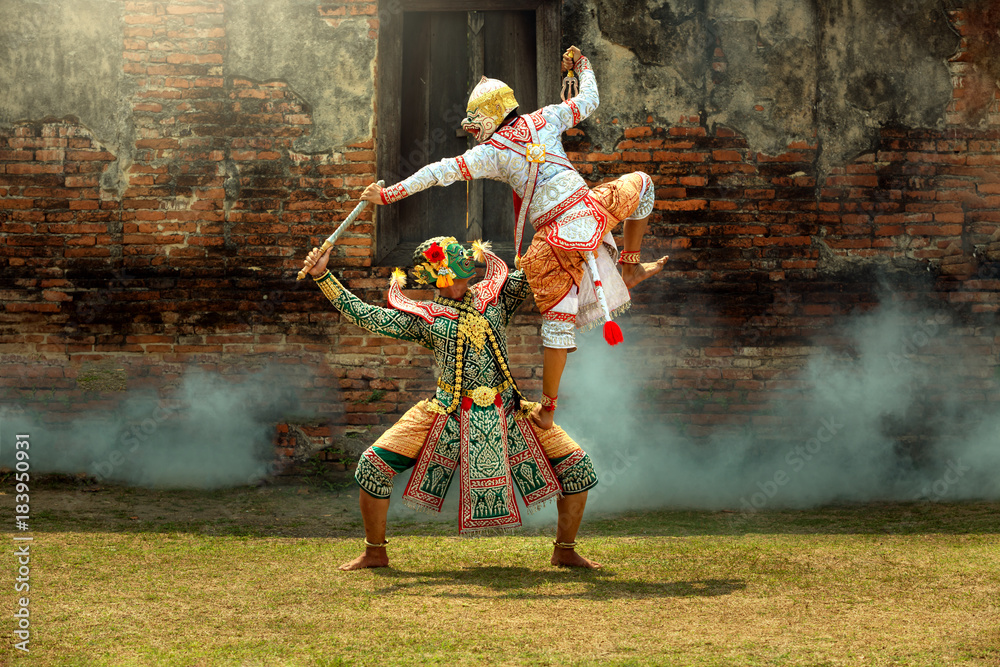 Khon Ramayana Hanuman and Thod Sa Kun soldier monkey with giant character in Rama story of Thailand and Asia.