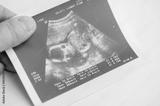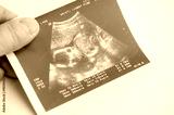 hand holds an ultrasound image of an unborn baby