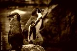 岩場に立つ二羽のペンギン