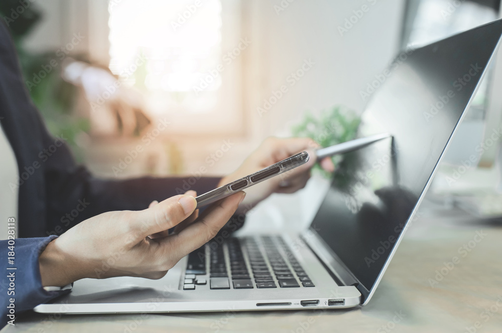business people working with laptop and mobile phone
