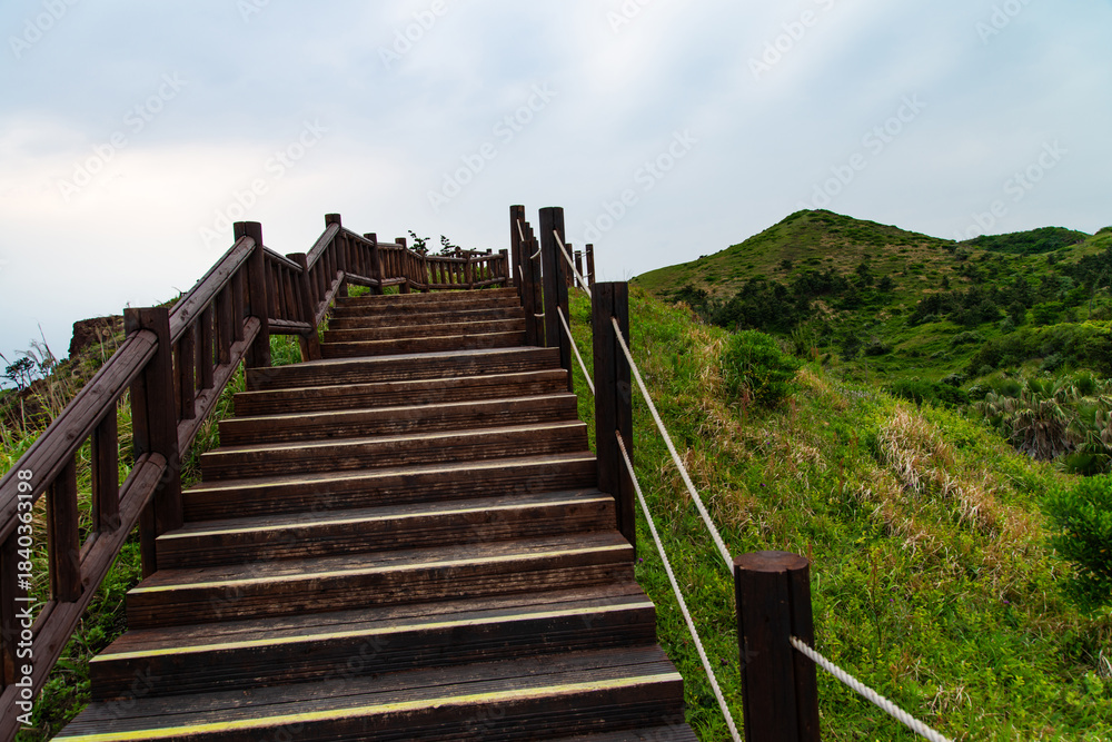 stairway on the seaside hill at Songaksan in Jeju Island, South Korea