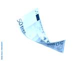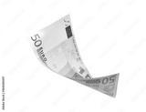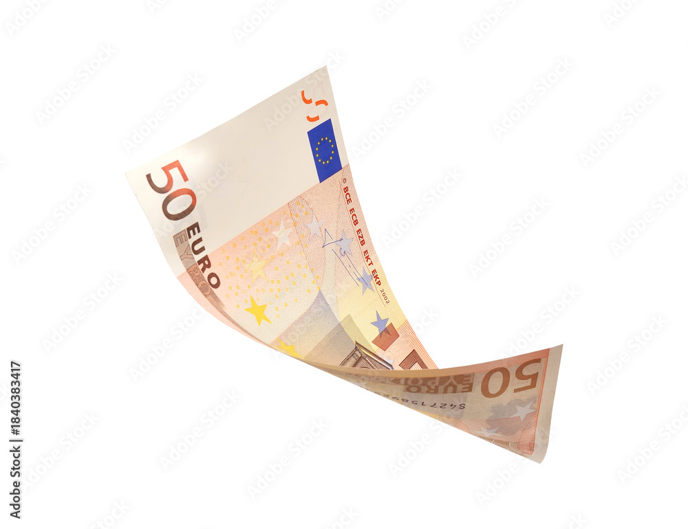 Flying 50 euro banknotes