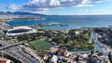 Aerial drone photo of famous Peace and Friendship Stadium Park in the heart of Piraeus, Attica, Greece
