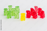 Colorful gummy bears on a white surface during daylight