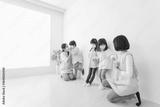 マスクを付けて幼稚園で遊ぶ子どもたちの先生