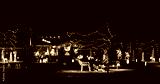 A Christmas light display in the front yard of a home on the drive of lights tour.