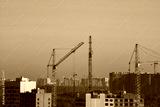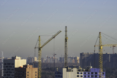 Crane and construction site against blue sky in the morning