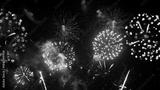 Amazing real beautiful colorful fireworks background on celebration night event for happy new year party, Abstract Multi color golden firework in the night sky