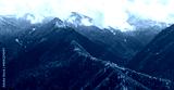 The landscape view of Snow-Capped Peaks and Evergreen Forest