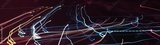 Abstract neon light trails. Long exposure. Dark motion blur background with copy space.