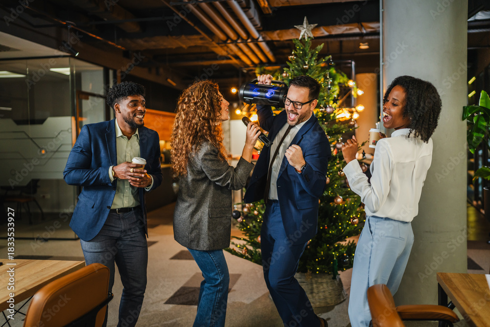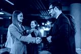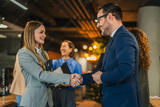 Business people shaking hands celebrating partnership in casual office