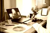 Close up of a graphic designer using a digital drawing tablet while creating artwork on a computer