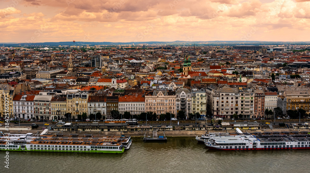 Amazing View Of Central Part Of Budapest At Sunset