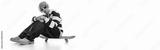 Stylish teenager showcases fashion and confidence on a skateboard background