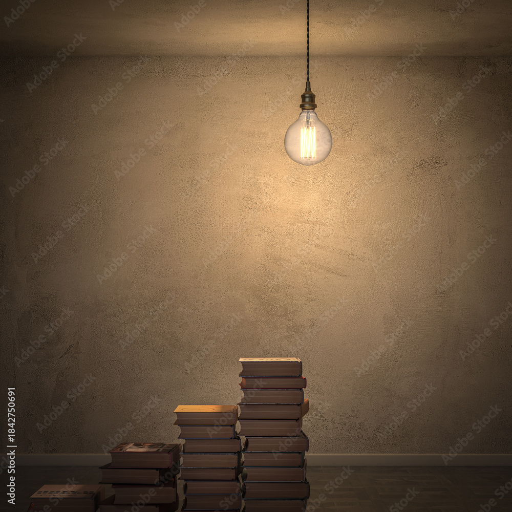 Books forming stairs 3d light bulb