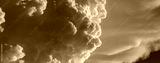 Panorama of menacing steel gray storm clouds billowing across the frame