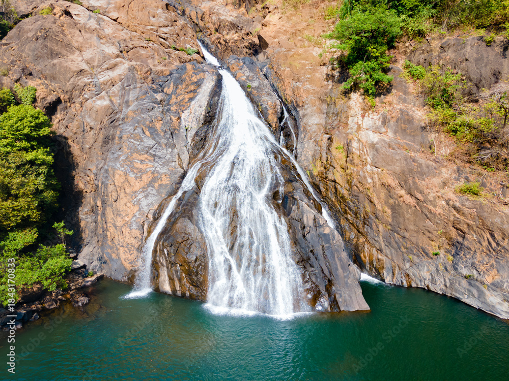 Dudhsagar Falls aerial panoramic view in Goa, India