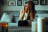 Woman Suffering a Severe Migraine at Home Feeling Sick. Unhappy depressed lady being in pain from a headache
