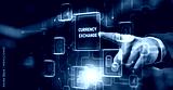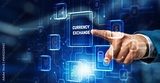Currency technology concept. Transaction currency exchange, blockchain technology. International money transfer, banking payment
