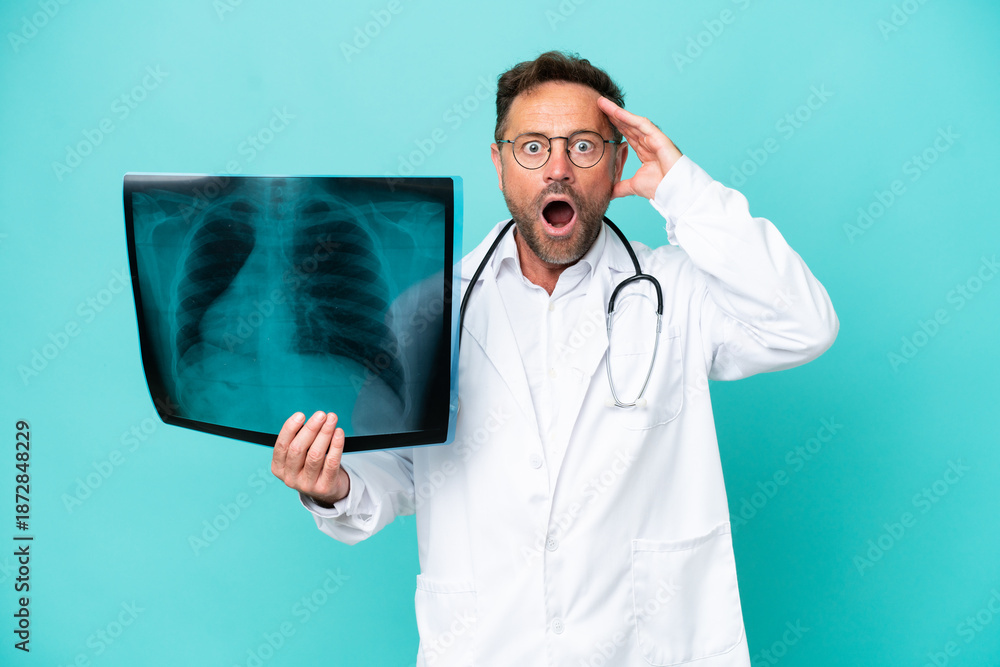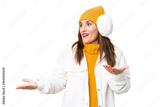 Middle age woman wearing winter muffs over isolated chroma key background with surprise facial expression