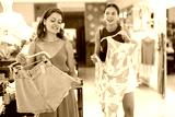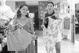 Young woman is shopping in womens clothing department, buying shorts. Off line clothing store from leading retailers ...