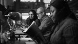 Annoyed woman asking people to keep the library rules and be quiet, polite request to maintain the silence. Mature colleagues studying together for exam, reading materials out loud.
