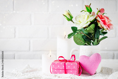Valentines day card. Mother's day. Selective focus, Background with copy space.
