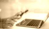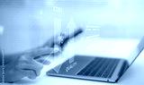 Business optimization concept showing cost reduction and quality improvement comparison with percentage chart and upward arrow over laptop for efficiency strategy performance management