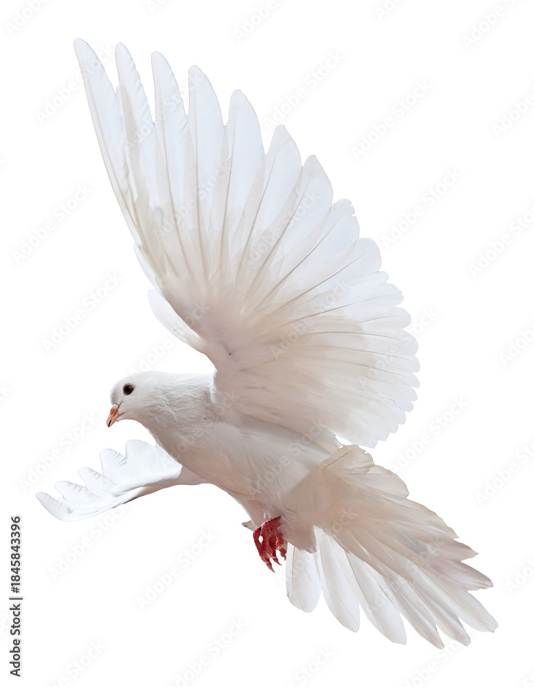 Majestic White Dove in Mid-Flight with Graceful Wings Spread Wide