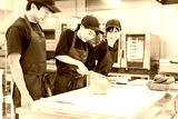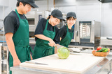 Kitchen, male and female cooks cutting cabbage in the back yard