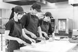 Kitchen, male and female cooks cutting cabbage in the back yard