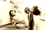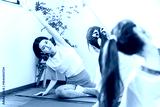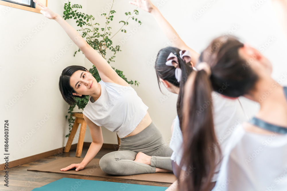 Yoga class, Pilates yoga teacher, female instructor and female student