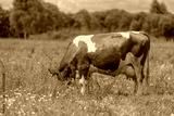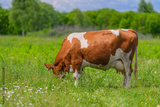 A Serene Cow Enjoying Peaceful Grazing in a Lush and Vibrant Green Field Setting