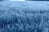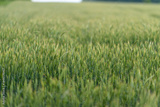 A Lush Green Wheat Field Sprawling Under a Clear Blue Sky, Perfect for Farming and Agriculture