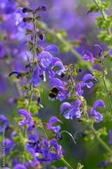The Vibrant Purple Flowers in Full Bloom Attract Busy Bees in the Beautiful Embrace of Nature