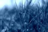 The Morning Dew is Glistening Beautifully on Fresh Green Grass Blades in the Early Sunrise Light