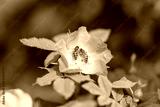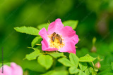 A stunning vibrant pink flower blooming in nature, with a busy bee diligently collecting nectar