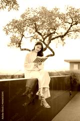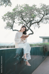 Young woman enjoying tranquil outdoor reading under tree