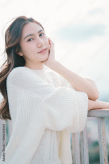 Young Asian woman posing outdoors on balcony