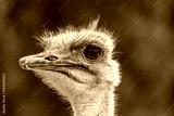 A close up view of the head of a common Ostrich in Oudtshoorn in the Klein Karoo region of South Africa in springtime