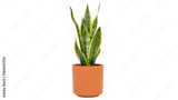 Sansevieria trifasciata in orange pot PNG isolated, snake plant or mother-in-law s tongue for home decor and air purification