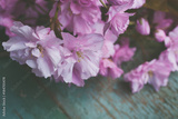 Rustic style Spring background with pink Japanese cherry blossom close up