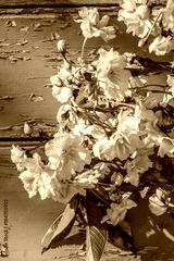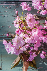 Beautifufl, vintage Spring background with flowers of Japanese cherry