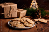 Christmas butter cookies with cinnamon and decorations