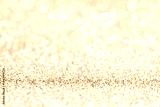 Golden beige white glittering Christmas lights. Gold Festive Christmas background.