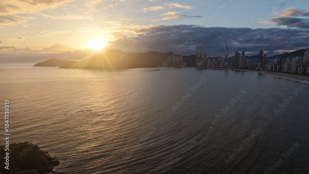 Sunset over Balneario Camboriu cityscape, Brazil, ocean view, tropical paradise