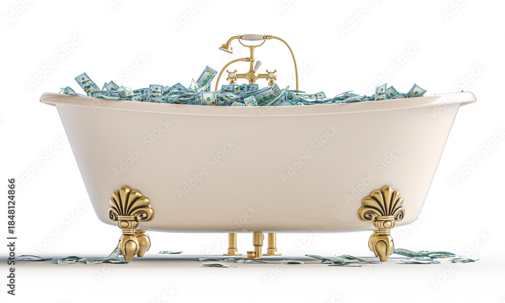 Vintage bathtub 3d full of cash
