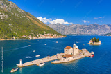 Saint George Island and Church of Our Lady of the Rocks in Perast, Montenegro. Our Lady of the Rock island and Church in Perast on shore of Boka Kotor bay (Boka Kotorska), Montenegro, Europe.