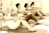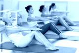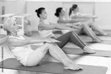 Athletic women doing pilates or aerobics - doing back exercises during group training in the gym