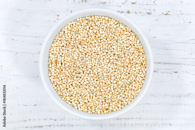 Quinoa Superfood von oben Holzbrett